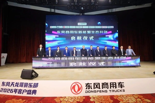 随后,东风商用车携手华为公司、羿动科技、东风畅行、启源芯动力、时代骐骥、中国人保财险、鼎和财产保险、东风汽车金融、创格融资租赁、优转科技10家生态伙伴,正式启动“新能源生态共创计划”,聚焦“车-电-充-租-换”一体化解决方案,助力天龙哥在新能源转型浪潮中行稳致远。